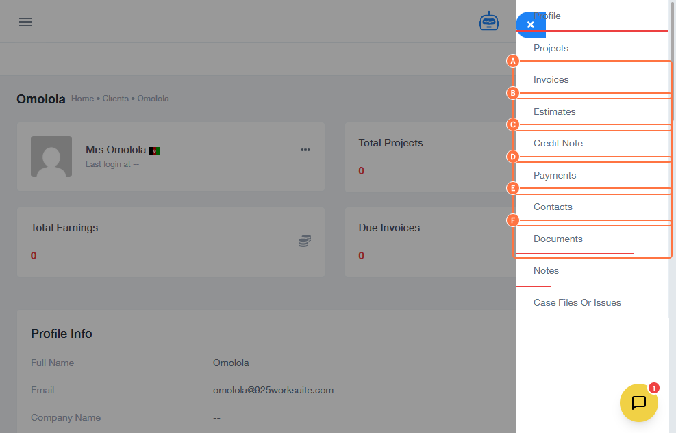 You can view and verify all client-related information, including financial records, documents, contacts, and internal notes, from a single profile.