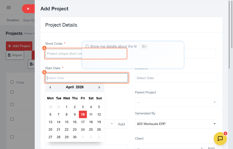 This guide explains how to create a new project and configure its details in the CRM. Projects are used to manage client work, track progress, and organize deliverables after a lead has been converted to a client.
