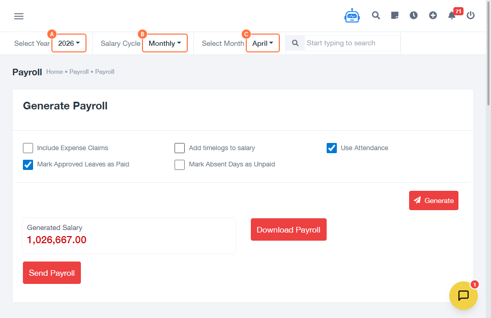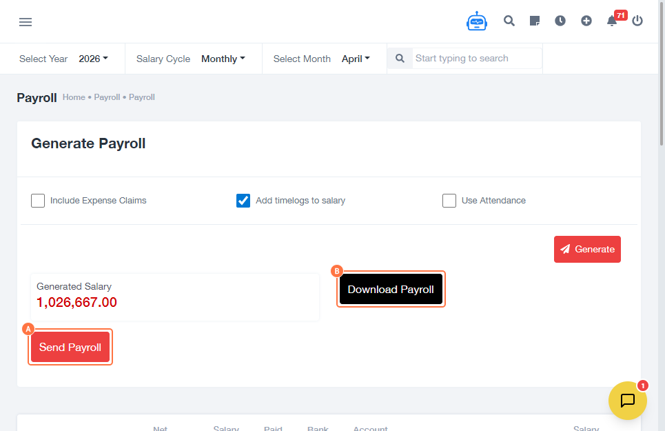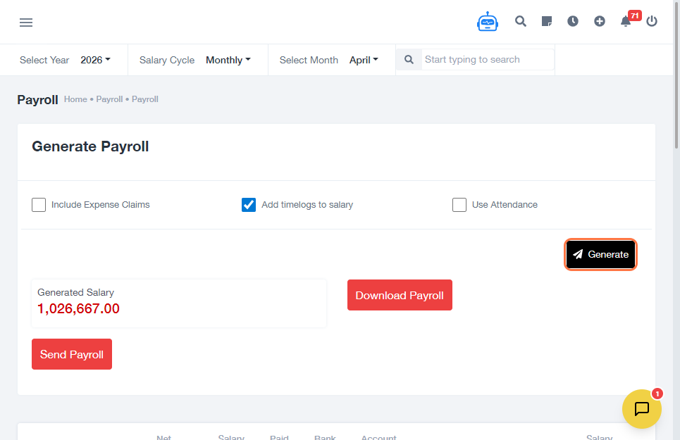 Payroll is successfully generated based on selected configurations, and employees receive their payslips or payroll data is downloaded for record-keeping.