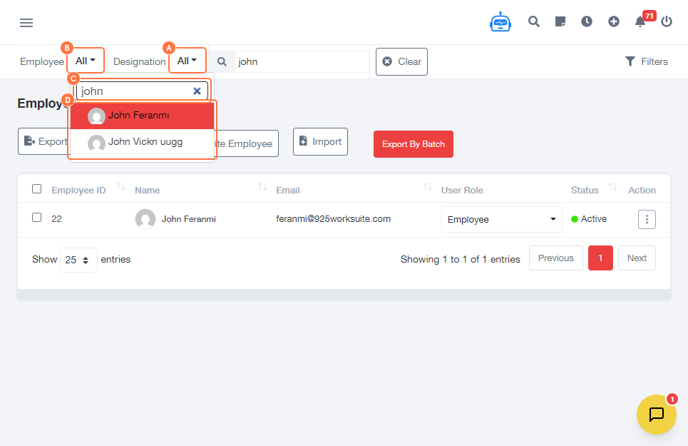 2. Can I filter employees by designation?