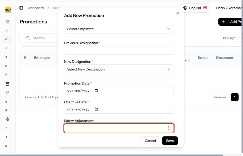 How to Add Employee Promotions in 925worksuite HRM